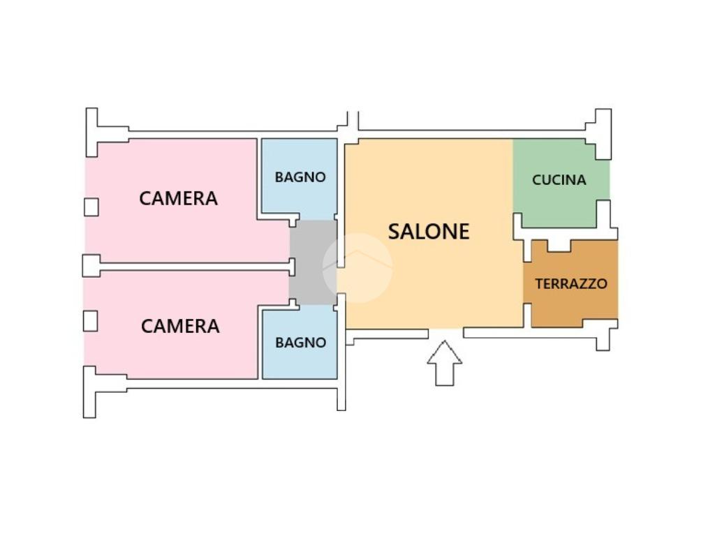 L’ingresso conduce a un ampio salone luminoso, con accesso diretto al terrazzo e alla cucina semi-abitabile, creando un ambiente accogliente e ben organizzato.