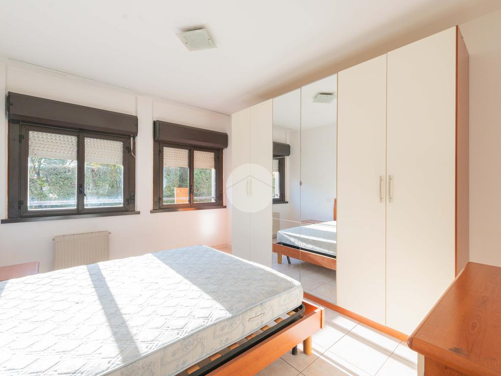 Un disimpegno pratico collega i doppi servizi alla zona notte, dove si trovano due spaziose camere matrimoniali, entrambe con esposizione a sud, che garantisce una piacevole e costante luminosità naturale.