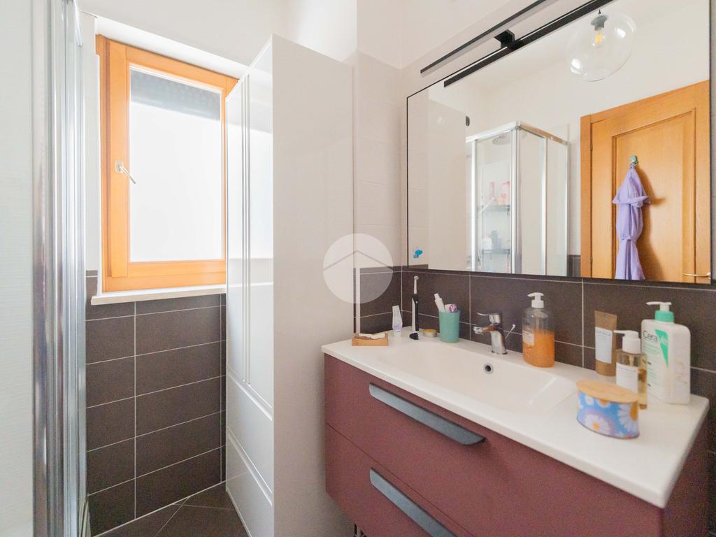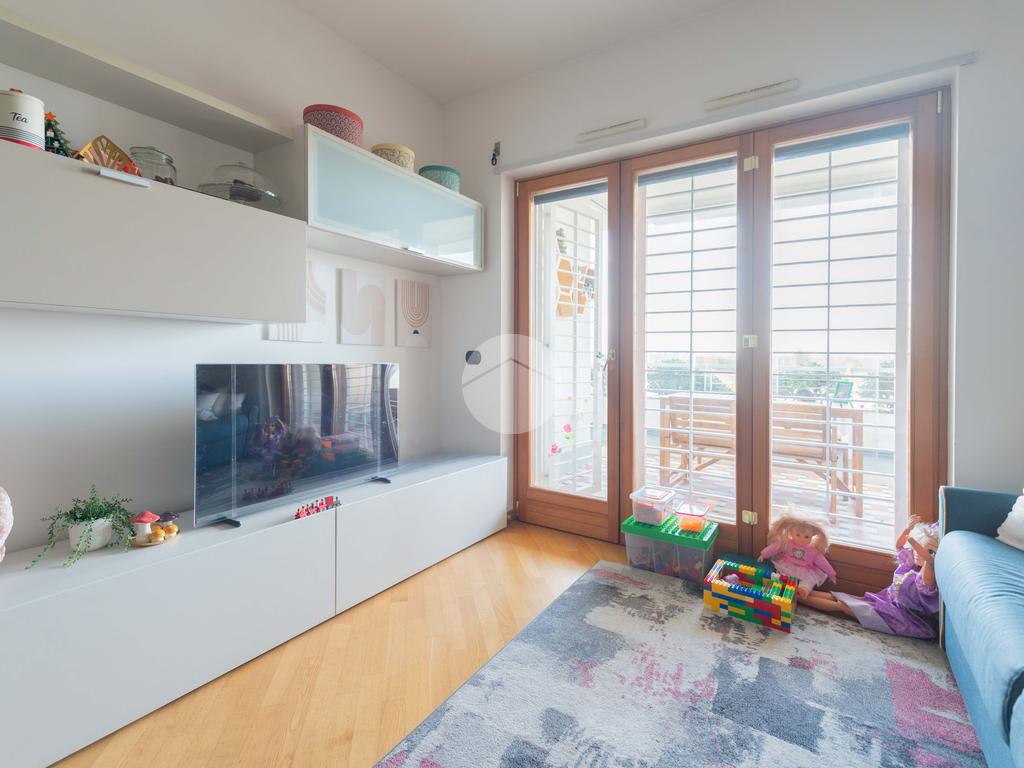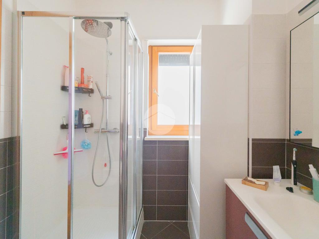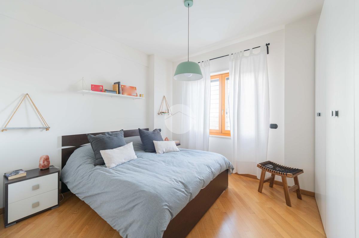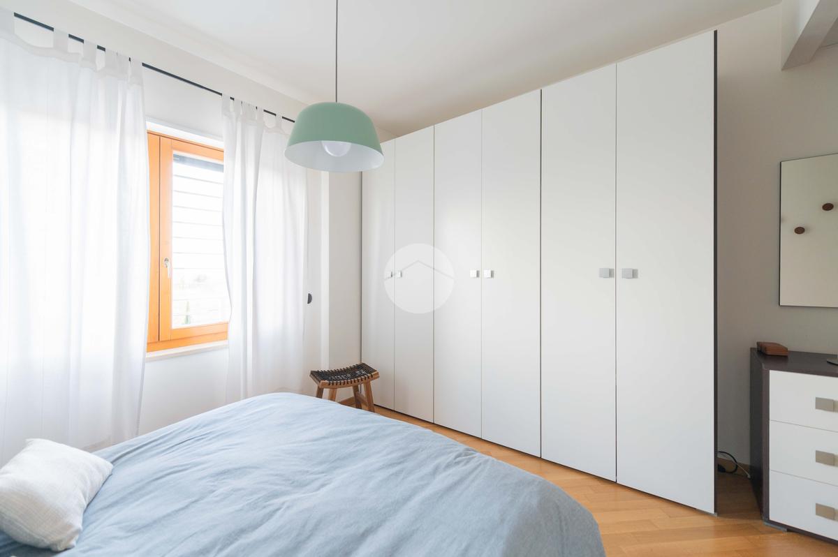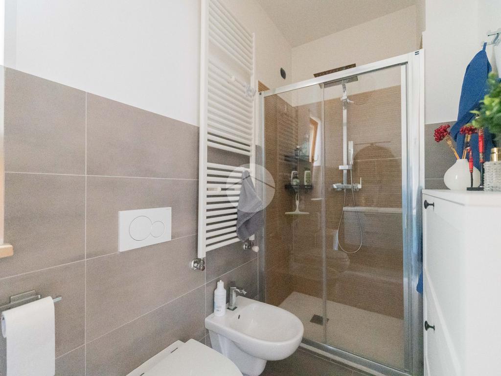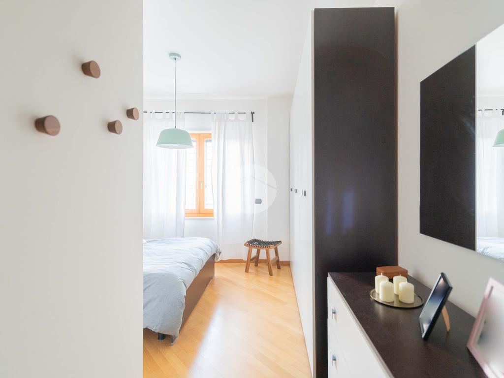 L’ingresso conduce ad una luminosa zona giorno dotata di pavimento in parquet, angolo cottura finestrato con penisola, e accesso diretto al terrazzo verandato, recentemente ristrutturato con dettagli di pregio. La zona notte è composta da una camera matrimoniale con bagno en suite, una seconda camera e un ulteriore bagno a servizio dell’abitazione.