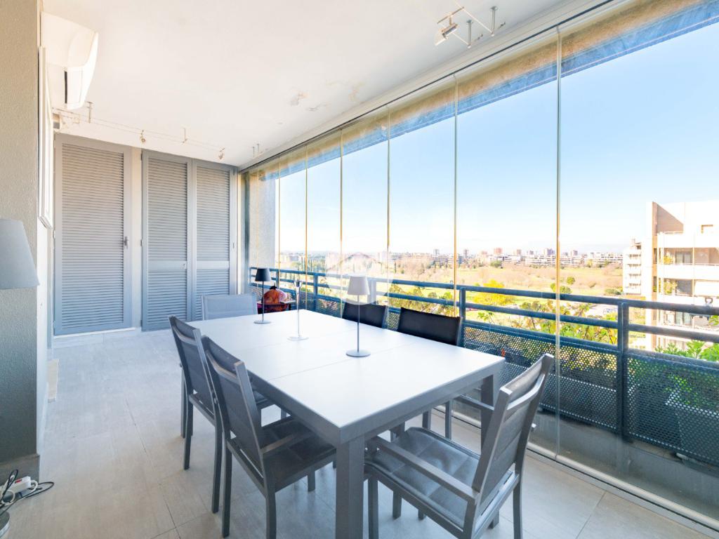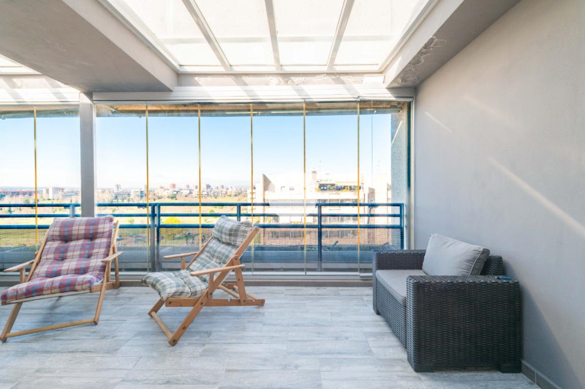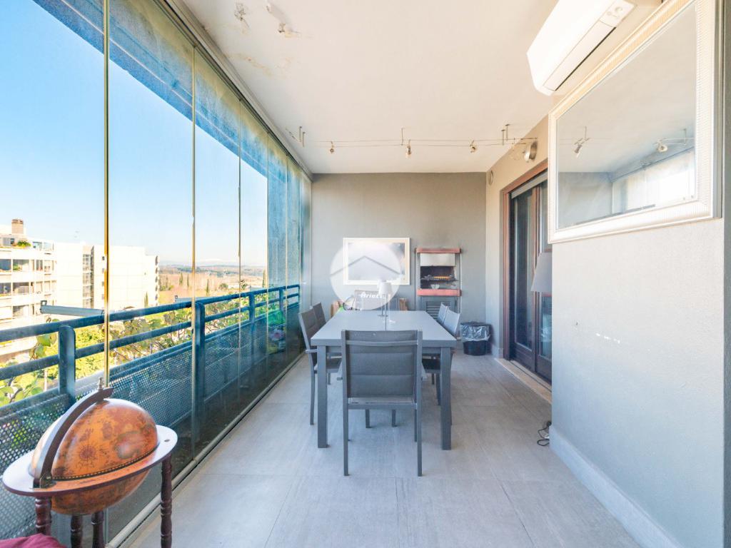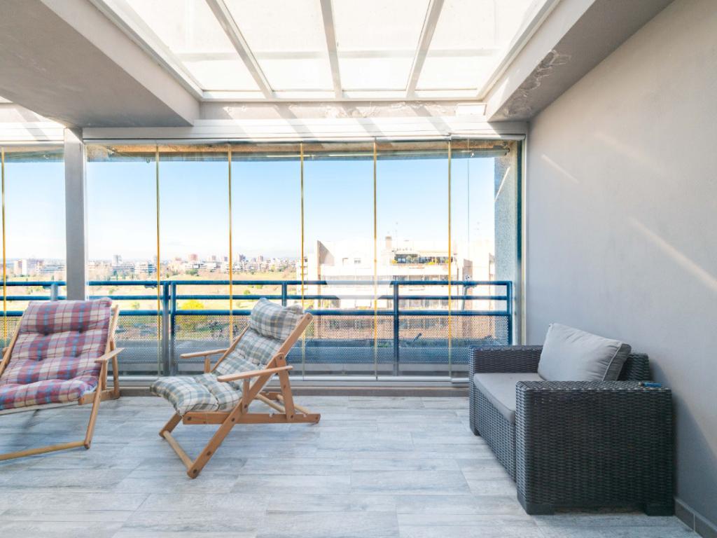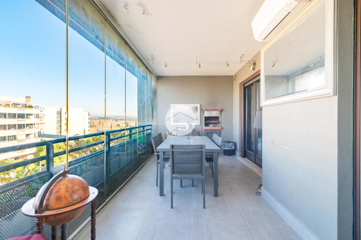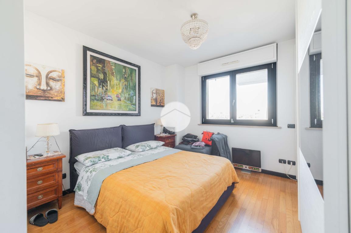 L'appartamento si sviluppa su due piani con ingressi indipendenti. Al quarto piano, l'ingresso conduce a un salone con angolo cottura finestrato e accesso al primo terrazzo verandato. Un disimpegno separa la zona notte, composta dalla camera matrimoniale con bagno en suite, una camera con accesso al terrazzo e un secondo bagno finestrato.